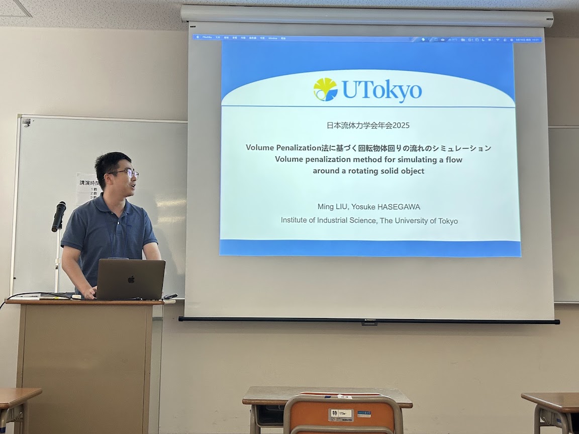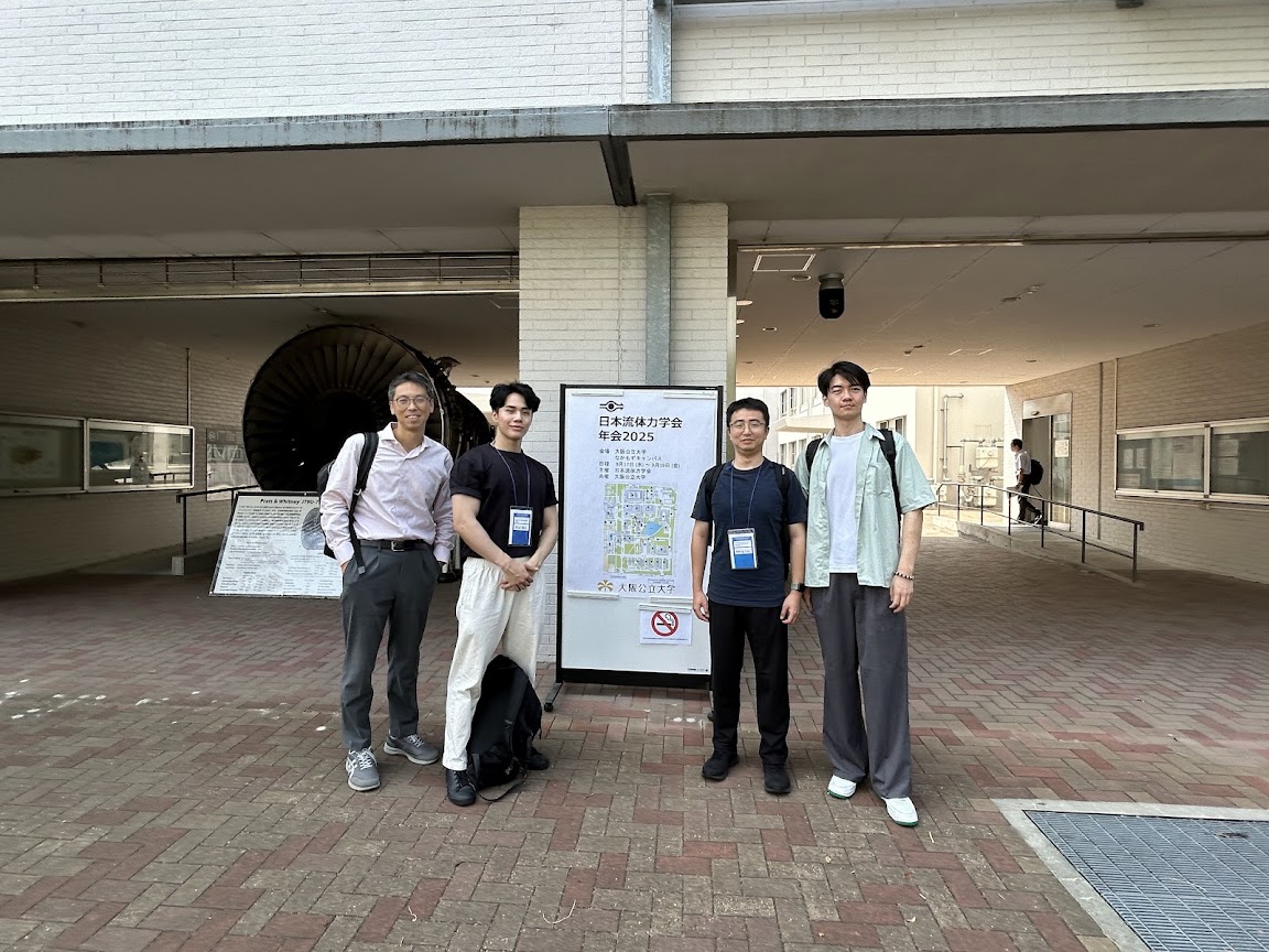 大阪公立大学にて開催された日本流体力学会年会(JSFM)に、長谷川研も参加いたしました。Mingさん、Fengboさんに加え、今年は修士2年の平山くんも発表しました。